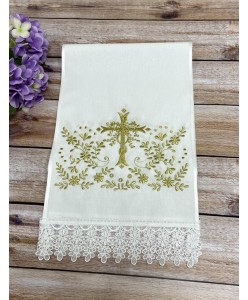 Рушник крем на білому - натуральна бавовна, машинна вишивка шовком. Розмір 32х160см. Підійде як весільний рушник, вінчальний, рушник під коровай, Євангеліє, ікону. Виробник студія VA Style Київ.