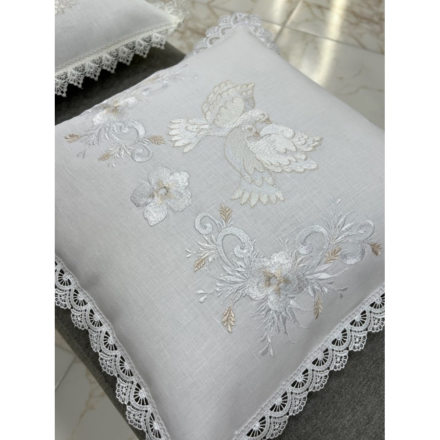 Подушка нареченоі на зняття фати. Машинна вишивка на білому льні білим та кремовим шовком Розмір 43х43 см. Наповнювач гіпоалергенний холофайбер у бавовняній наволочці.