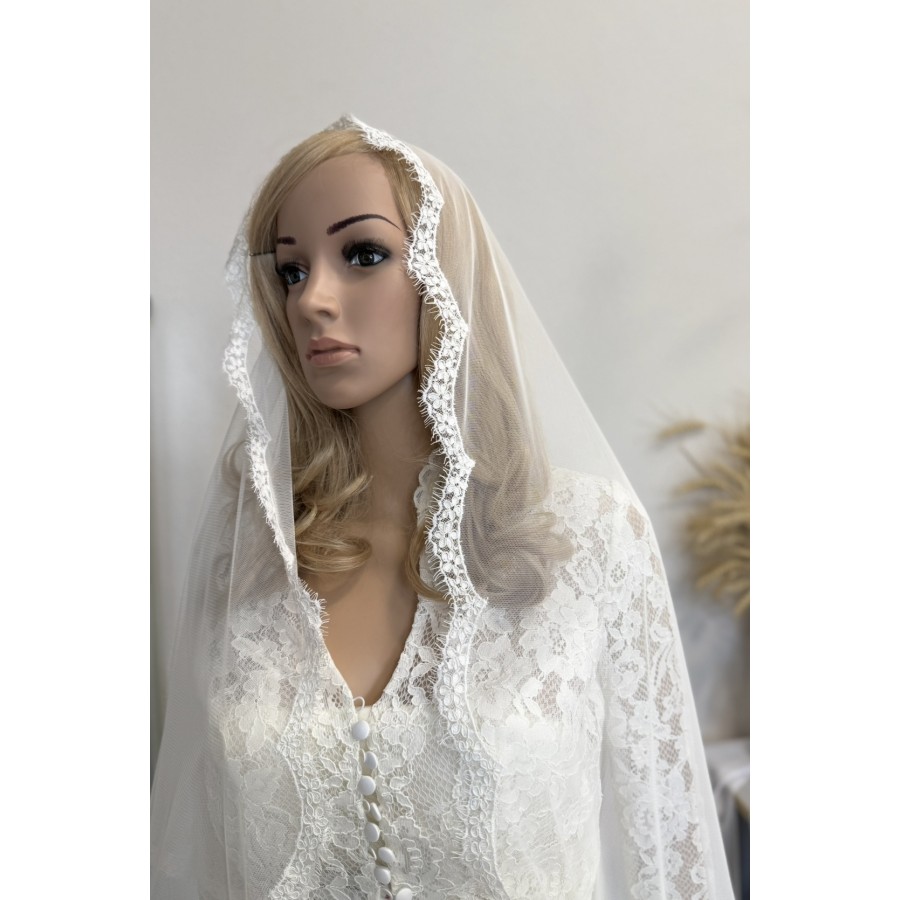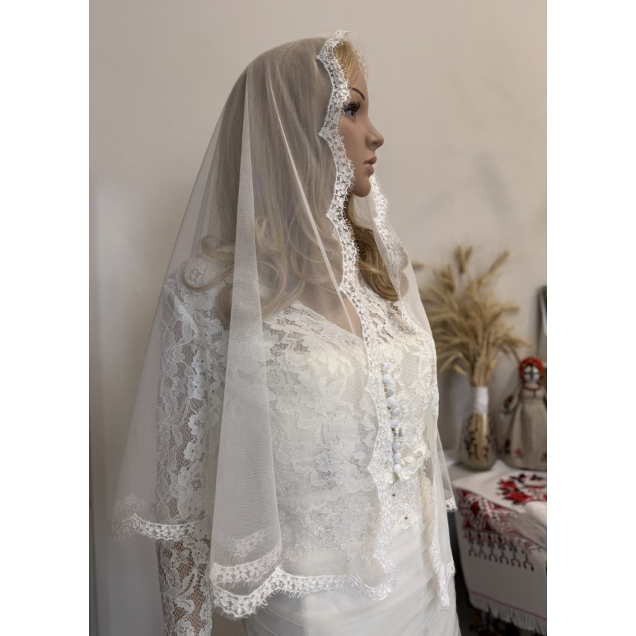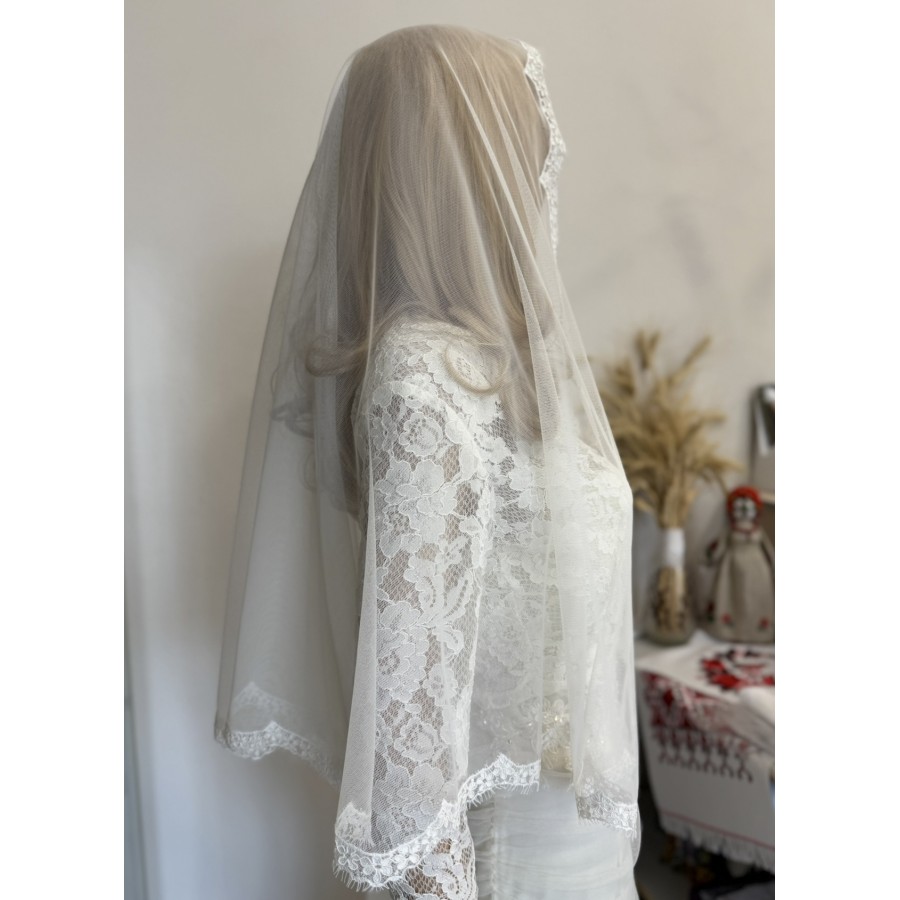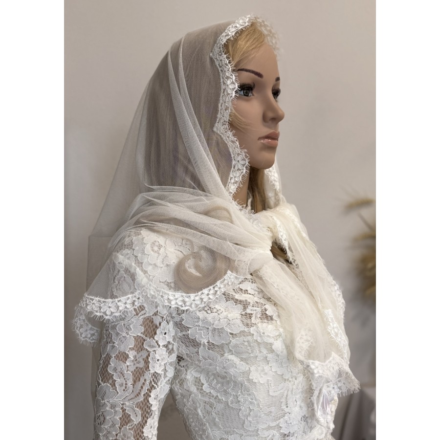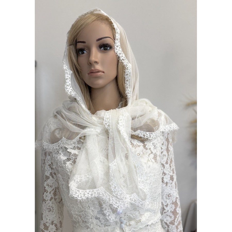 Платок-шаль з ніжної сіточки та ажурного кордового французського мережива. Колір айворі! Розмір хустки 80x160 cм. Вирбоник VA Style Київ, Україна.