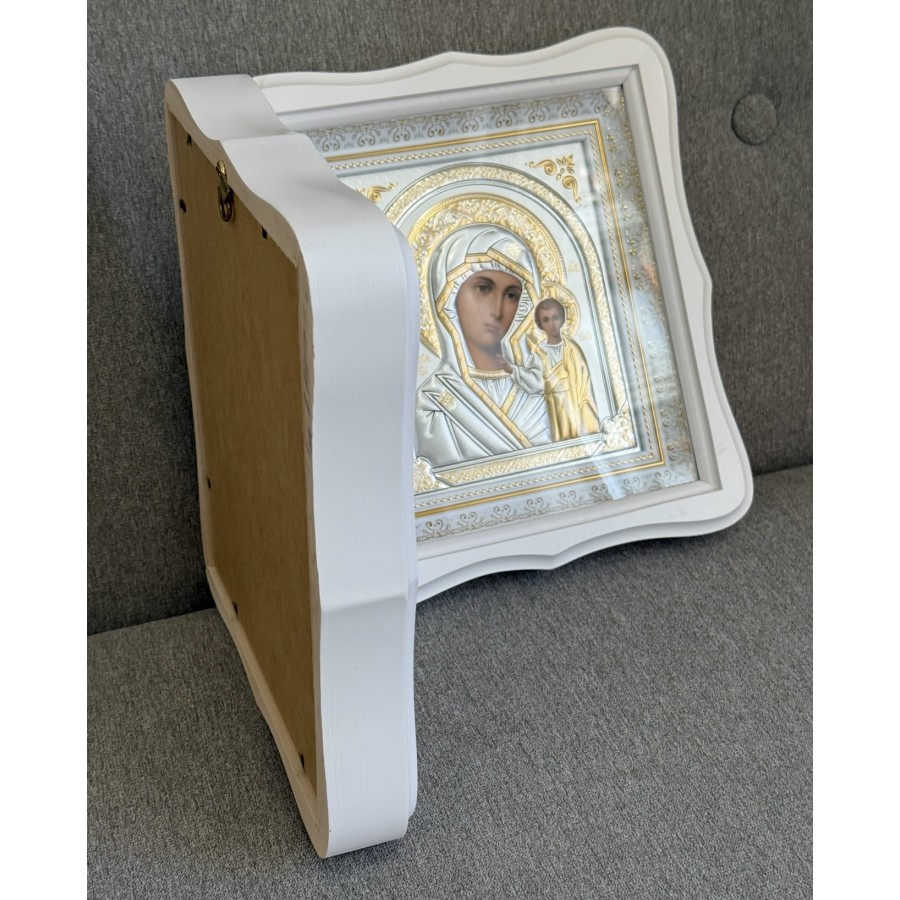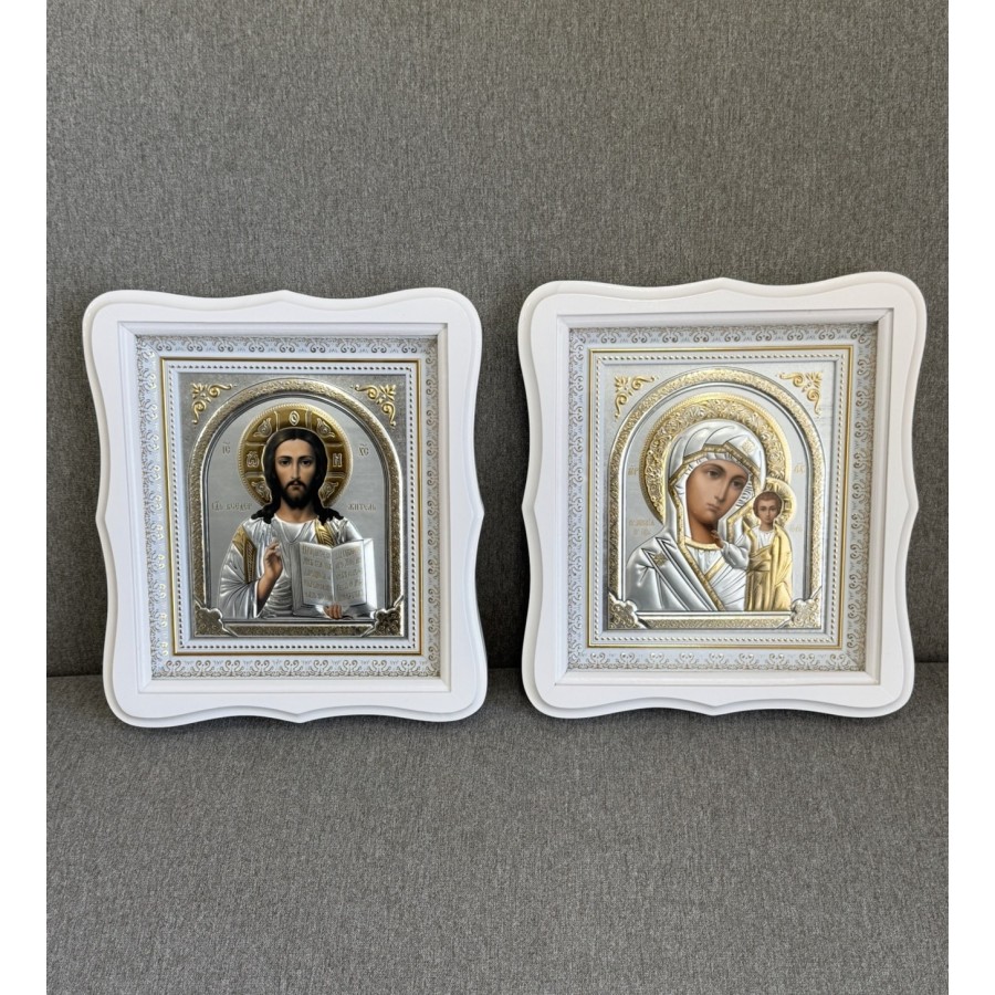 Вінчальна пара ікон -розмір 24х27х4 см. Рамка натуральне дерево, лік- друк з тисненням та захисне скло. Ціна за пару