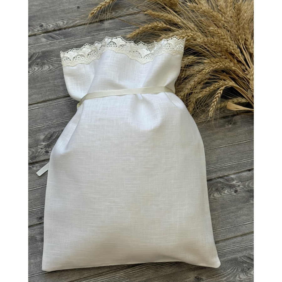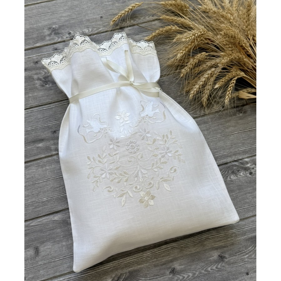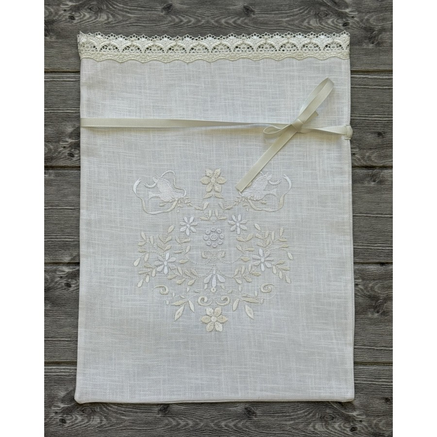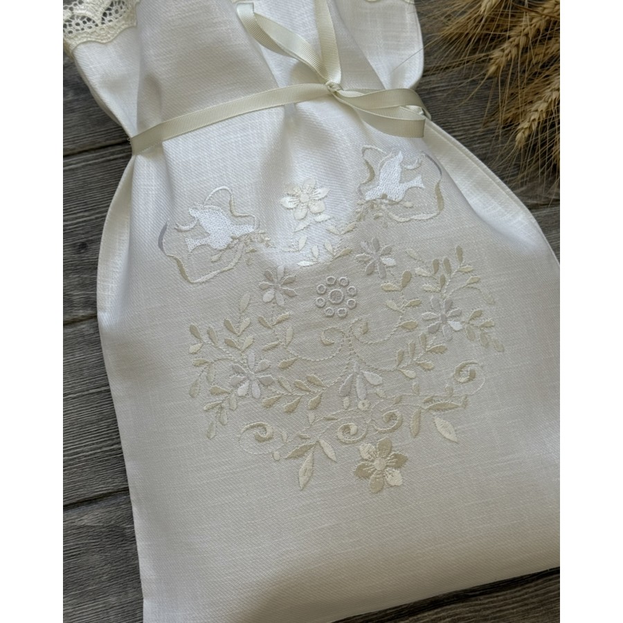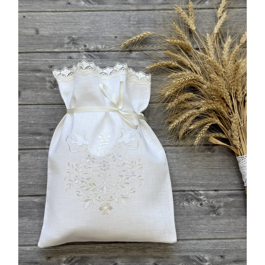 Мішечок для хліба на вінчання з молочного натурального льону та з машинною вишивкою в ніжних тонах. Розмір 33х44 см.