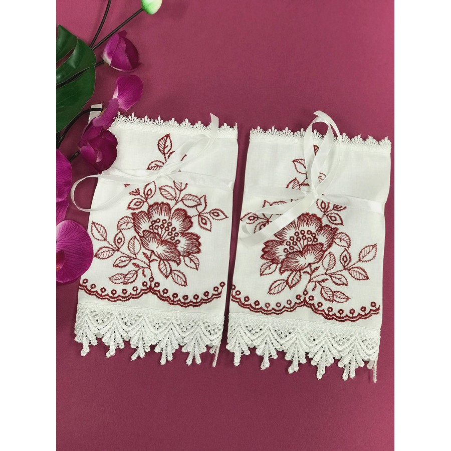 Держатели для свечей хлопковые с вышивкой шелковыми нитками в бордовом цвете с рельефным кружевом.Высота 22см , ширина 13см. Цена за пару.Свеча вставляется внутрь и обвязывается ленточкой.