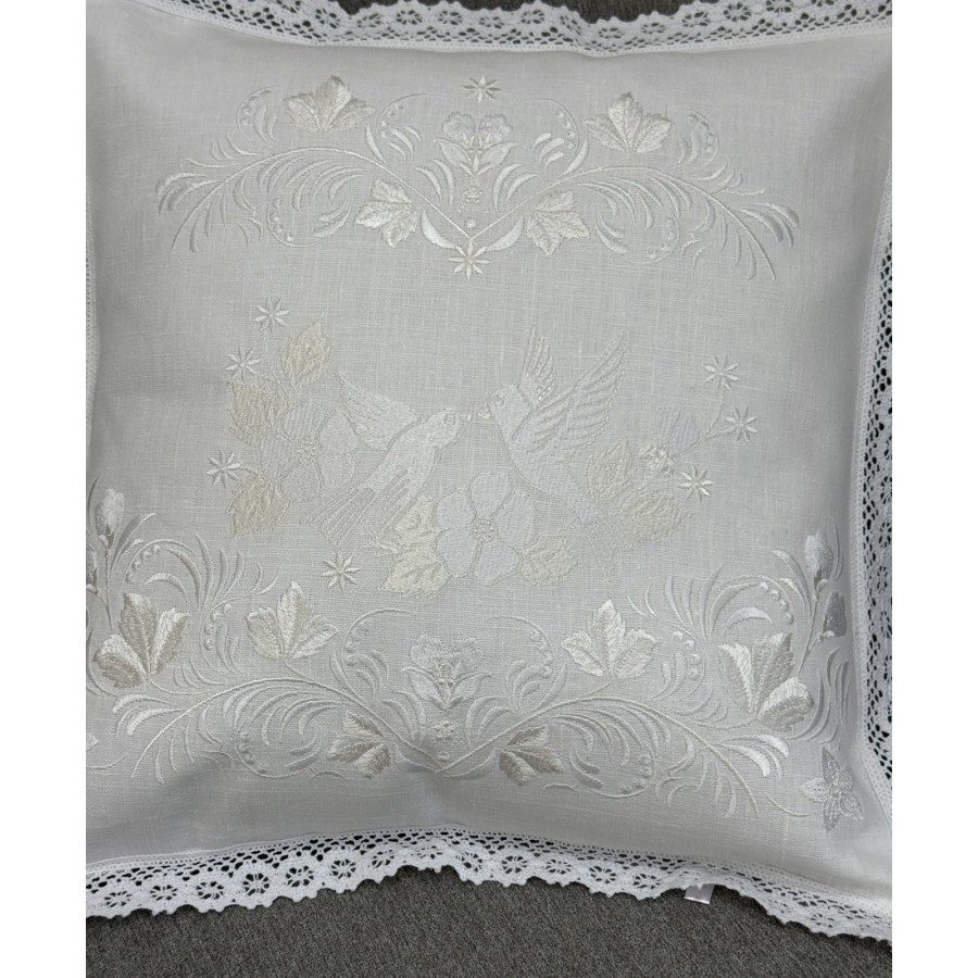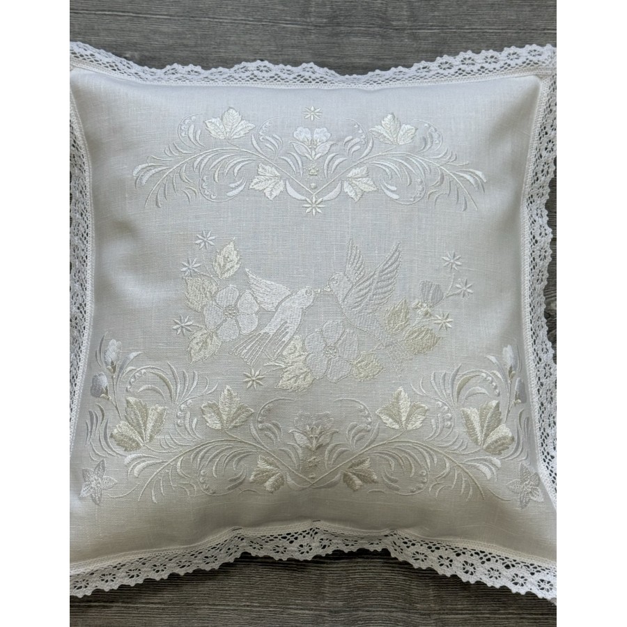 Подушка нареченоі на зняття фати. Машинна вишивка на біло-молочному льні білим та айворі шовком Розмір 43х43 см. Наповнювач гіпоалергенний холофайбер у бавовняній наволочці.