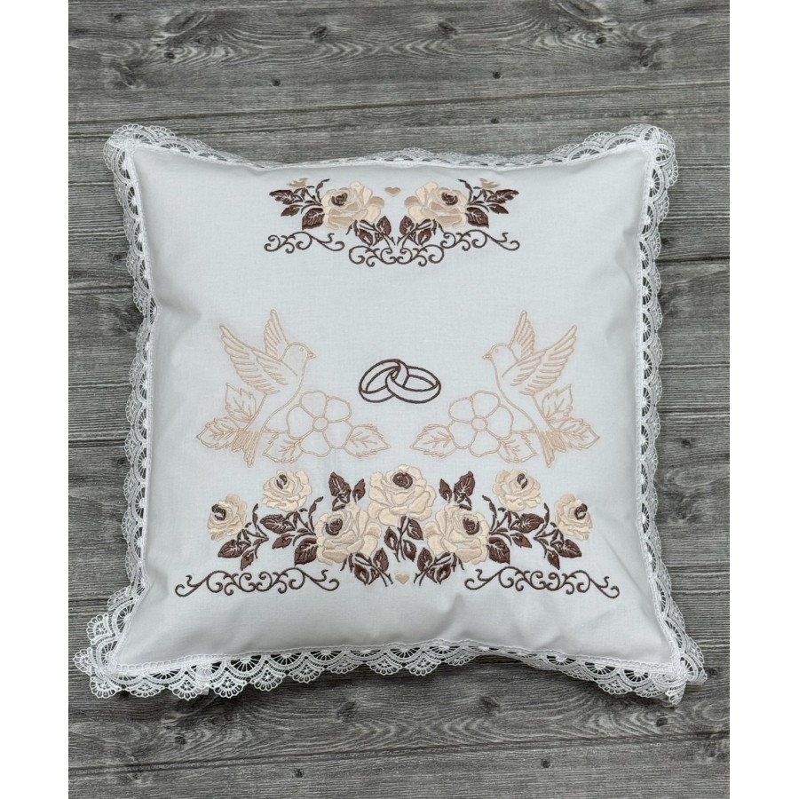 Подушка нареченоі на зняття фати. Машинна вишивка пудра-беж на білій бязь-бавовні шовком. Розмір 40х40 см. Наповнювач синтепух в бавовняній наволочці.