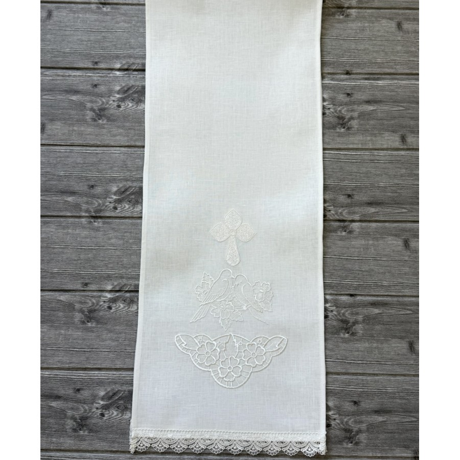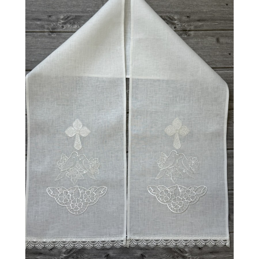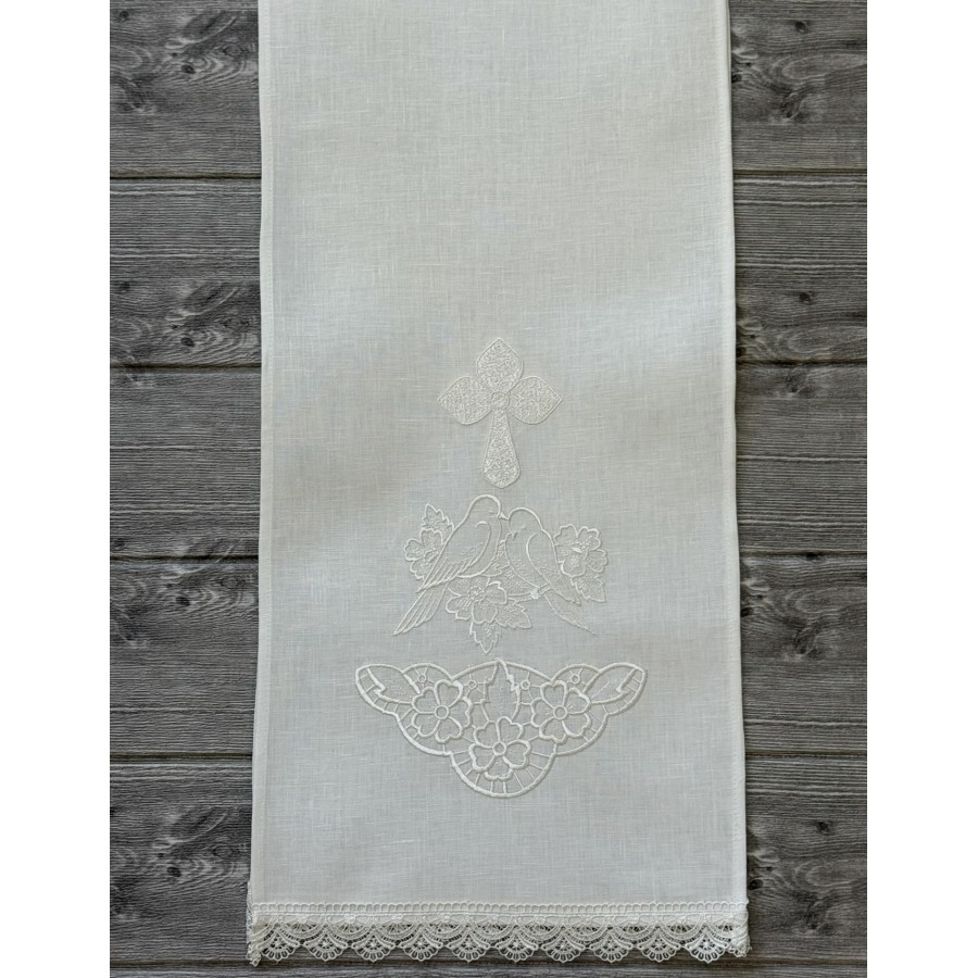 Ніжний рушник на весілля, сватання, вінчання з натурального льону кольору айворі з машинною вишивкою шовком. Розмір 29х150 см. Підійде як рушник для рук, на ікону, до Євангеліє.