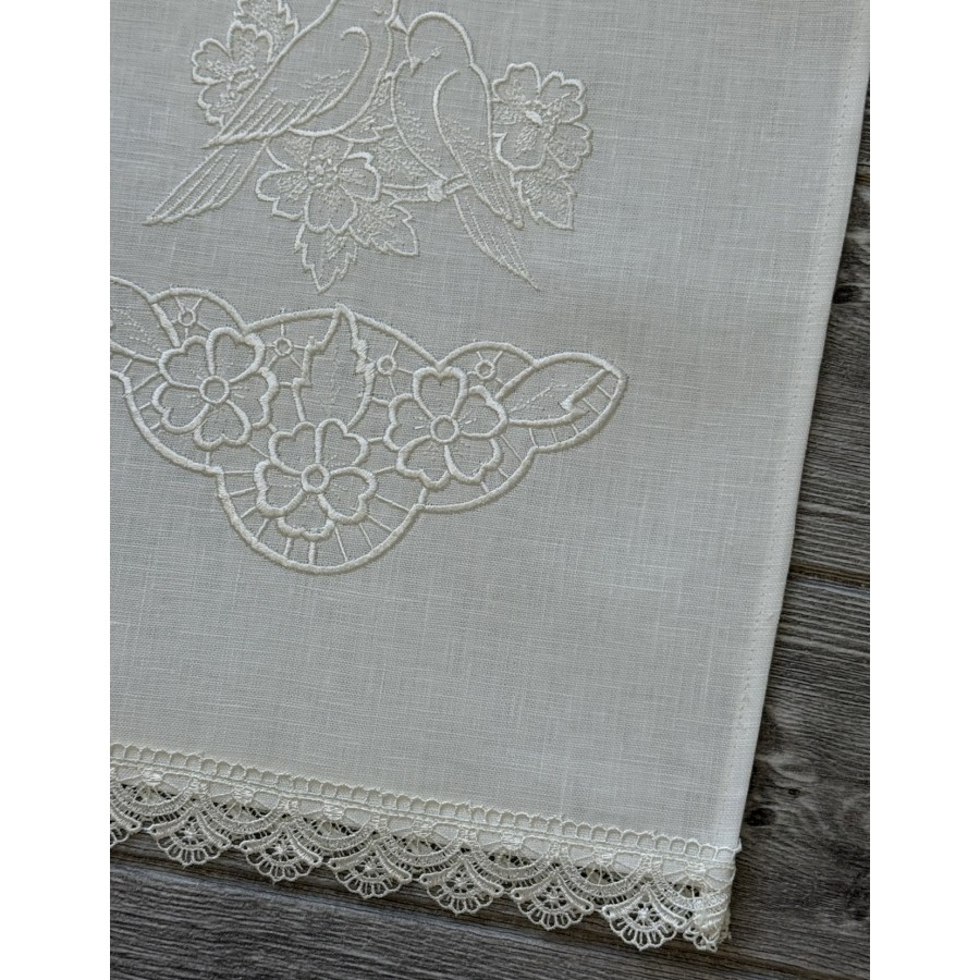 RU 187 Рушник льон айворі пташки хрест 29х150