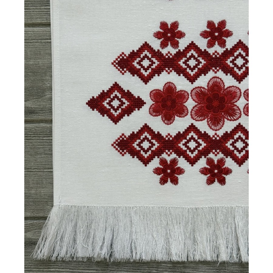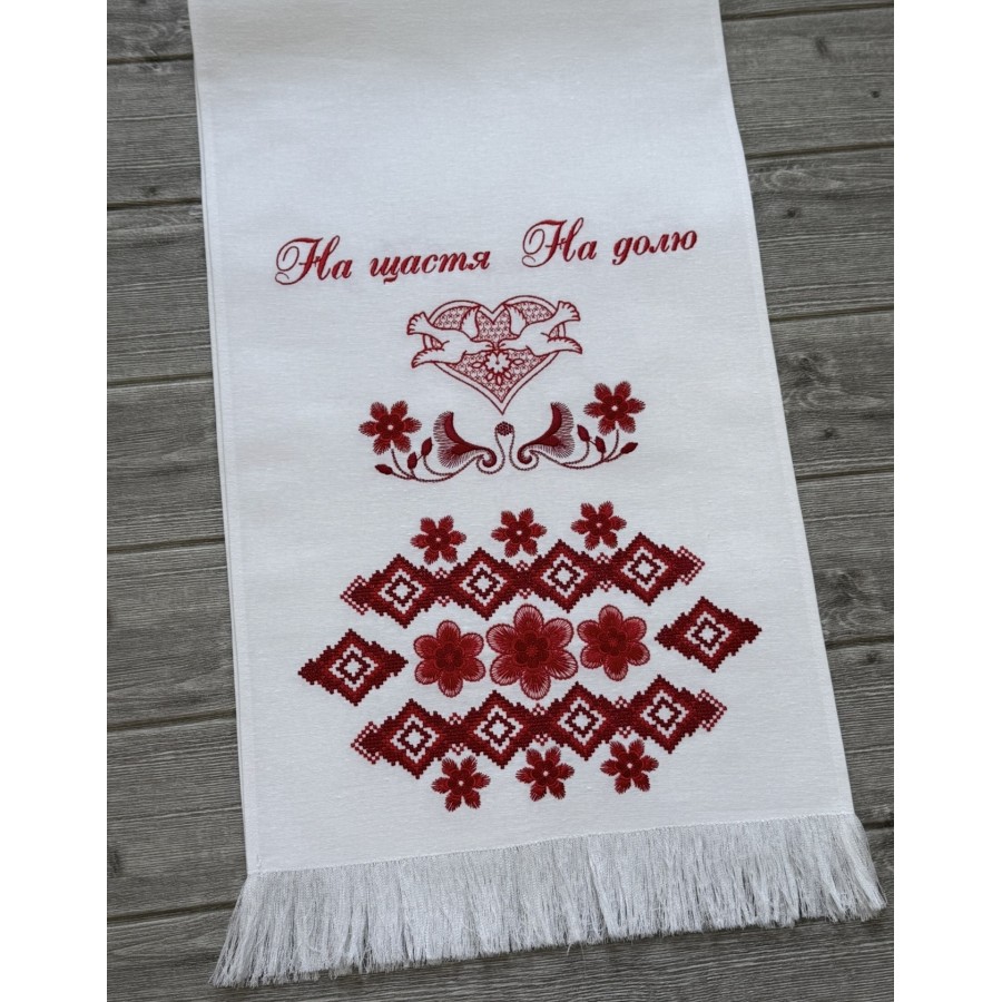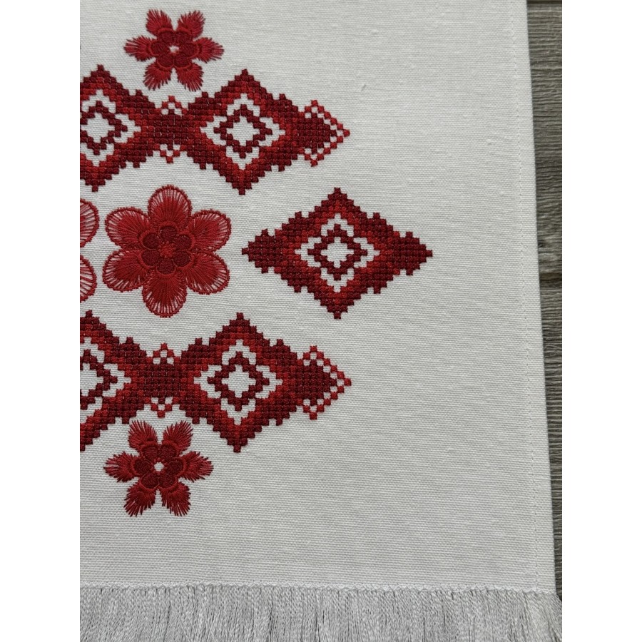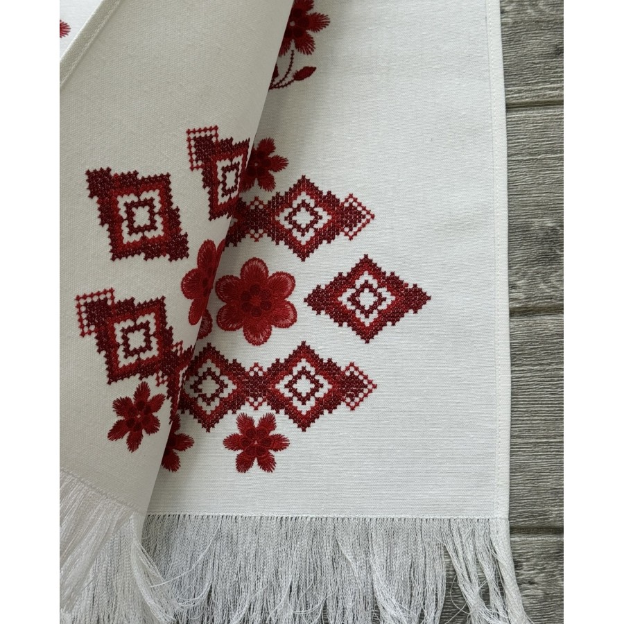 Рушник з домотканого полотна з натуральної бавовни білого кольору та з машинною вишивкою в червоних тонах. Розмір 39х145см. Ідеально на весілля, вінчання, сватання. Виробник VA Style Київ.