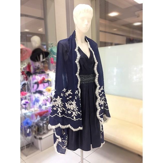 NK 075-blue Палантин синий хлопок с вышивкой