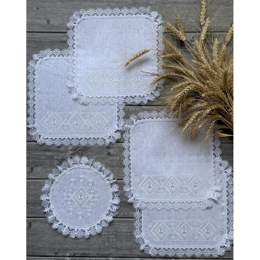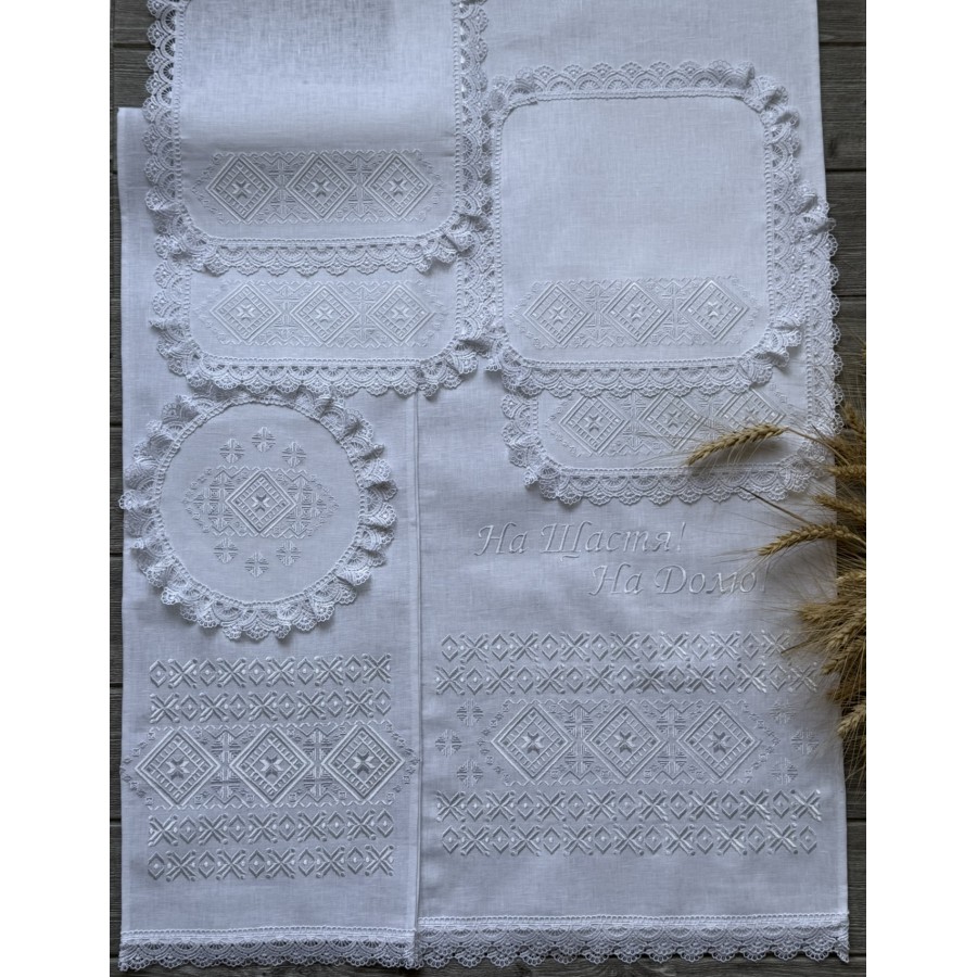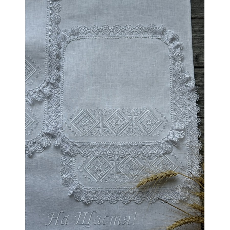 PL 121-w Набір рушників та платочків білий льон геометрія