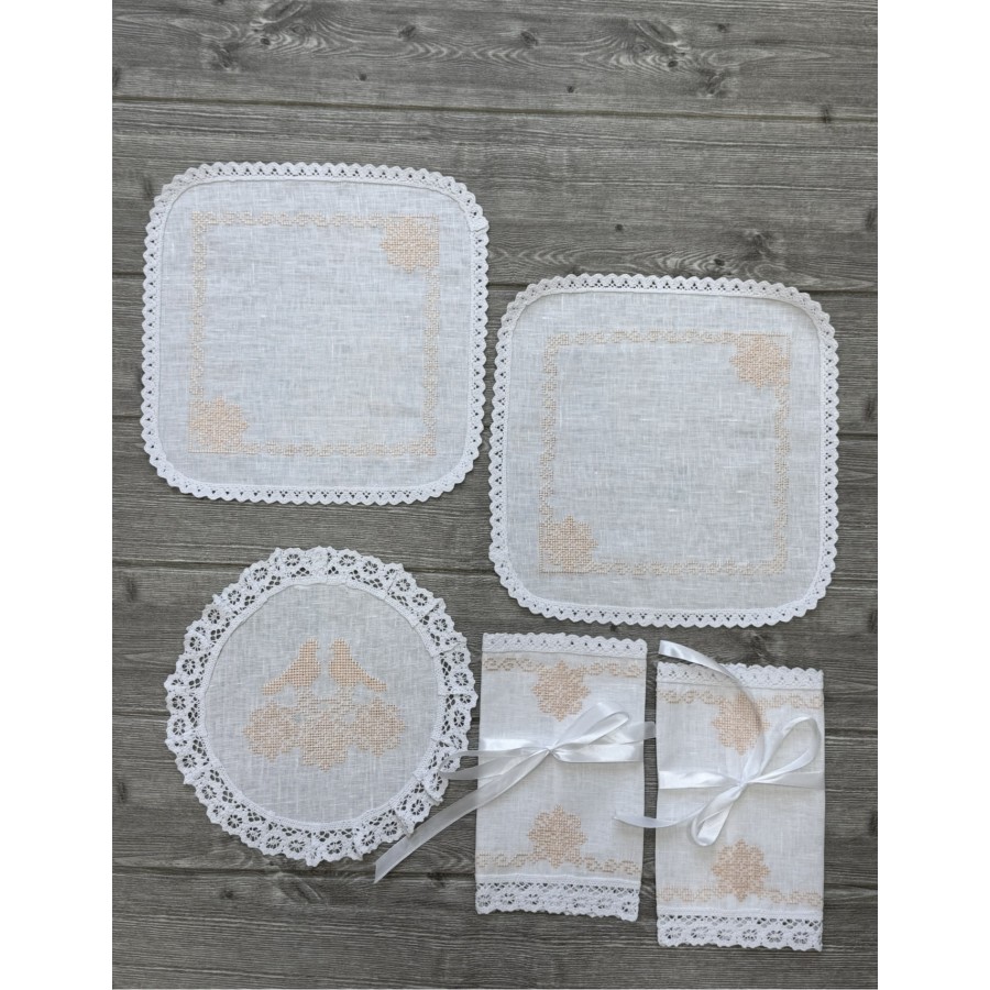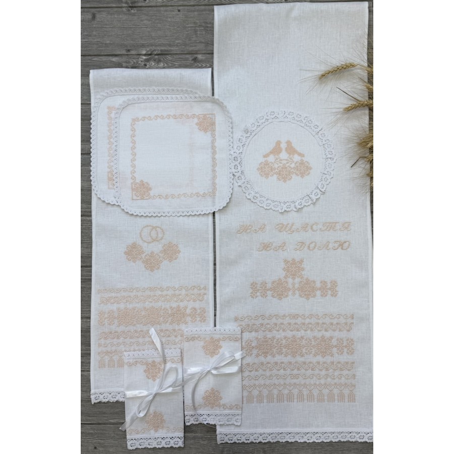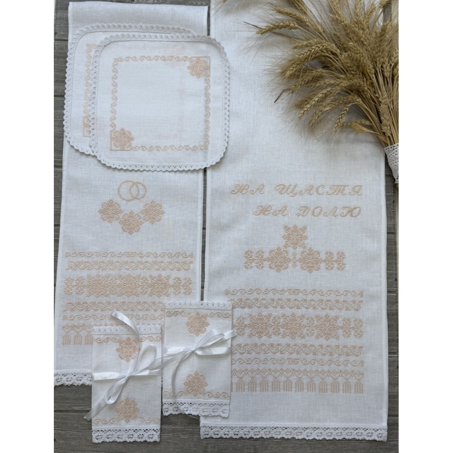 PL 192-3027 Набір платочків та рушників вінчальний льон персик