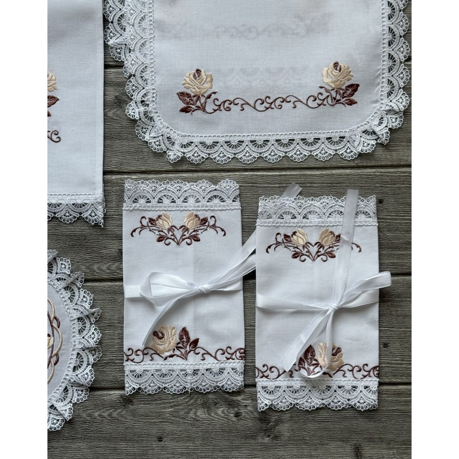 PL 191-3200-3027 Набір рушників і платочків троянди коричн-пудра бавов