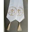 Закладка подвійна до Євангеліє з білої бавовни з золотисто-бежевою вишивкою та шовковими китицями. Розмір 130х15 см. Малюнок вишитий з обох сторін.