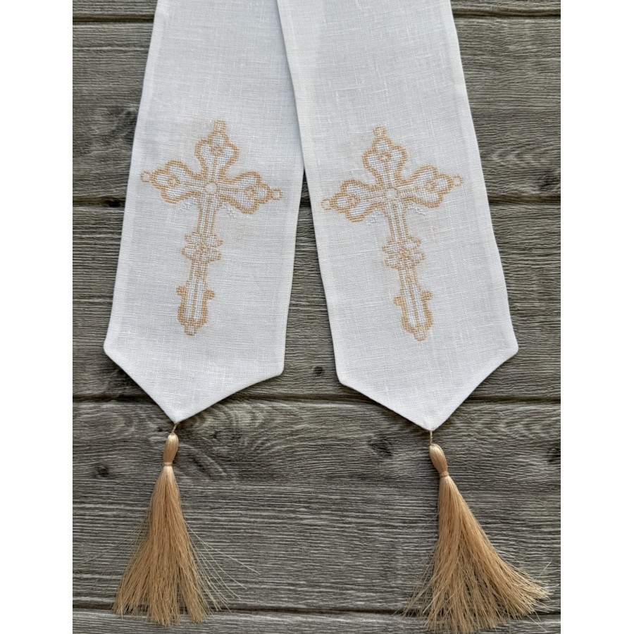 Стрічка-закладка до Євангеліє з натурального льону білого кольору та машинної вишивки білим та бежевим . Розмір 10х110 см.