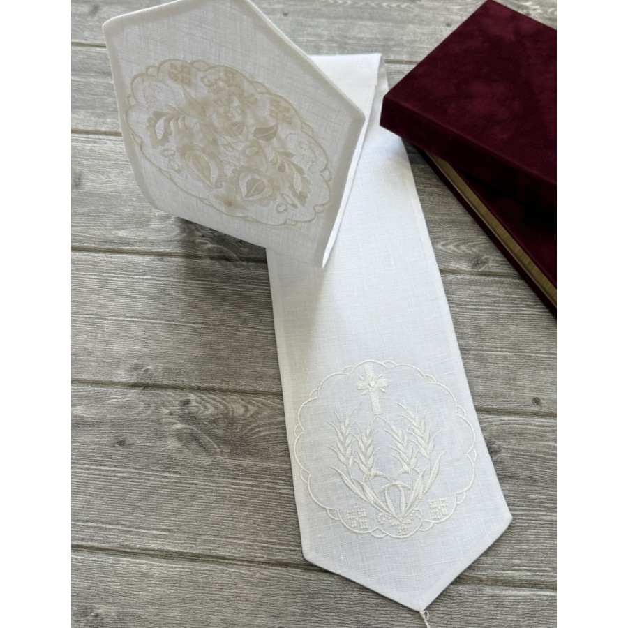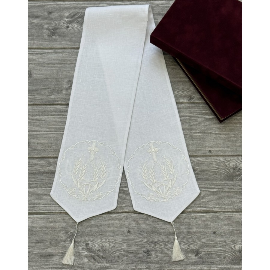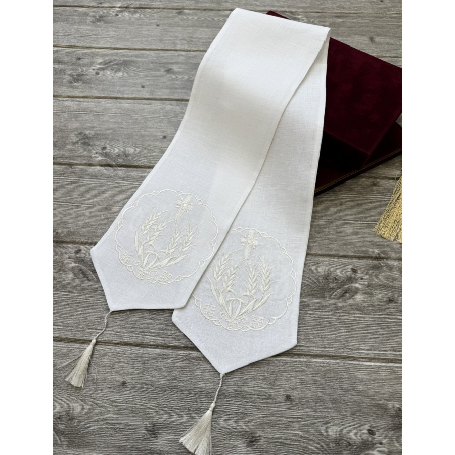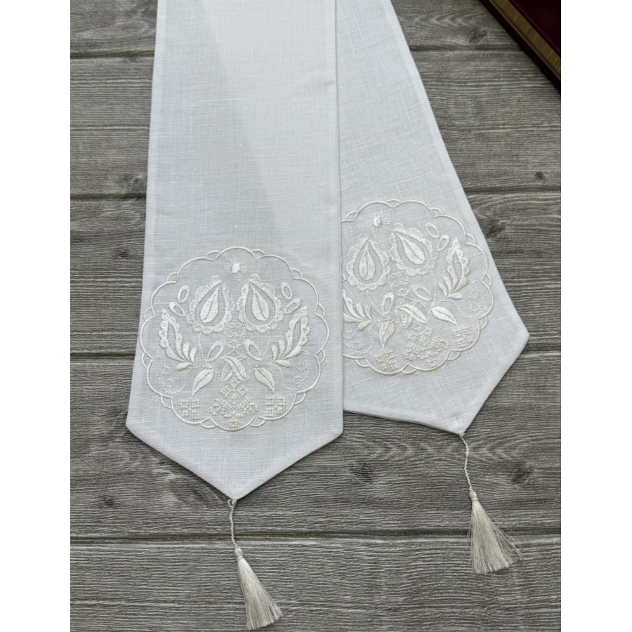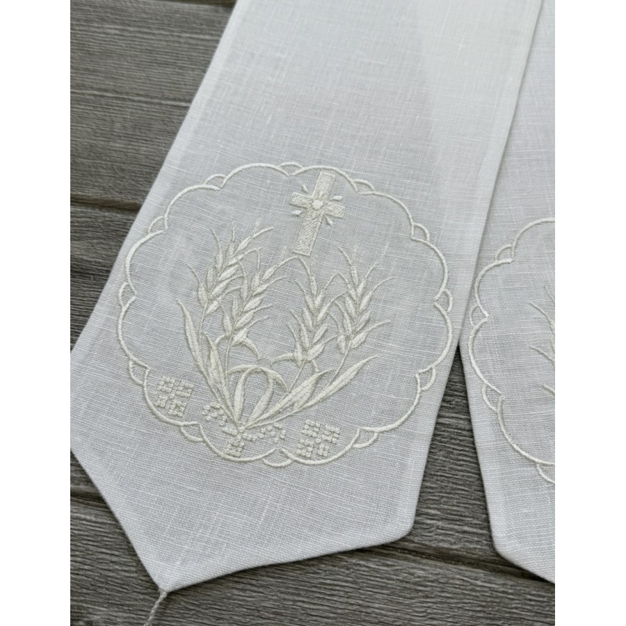 Стрічка-закладка до Євангеліє з натурального льону кольору айворі та машинної вишивки айворі. Розмір 14х100 см.